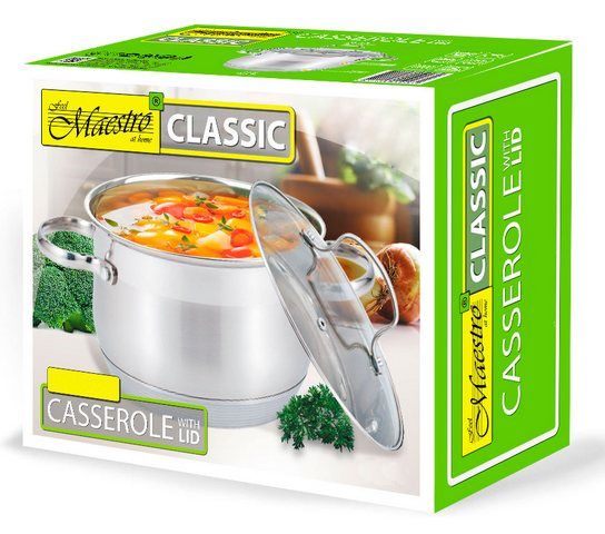 Maesto Кастрюля 2,9л (нержавеющая сталь, размер 18х11,5, мерная шкала литража, крышка 18см из стекла с отверстием для паровыпуска, внутри изделия - зеркальная полировка, внешнняя полировка сатин, 9-ти слойное индукционное дно) Гонконг