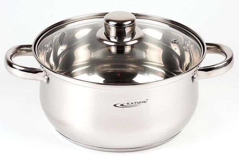 Посуда изготовлена из нержавеющей стали, которая сохраняет вкус и аромат блюд, не вступает в химические реакции с пищей. Может быть использована на типах плит: газ, электричество, стеклокерамика, отлично моется в посудомоечной машине и вручную.