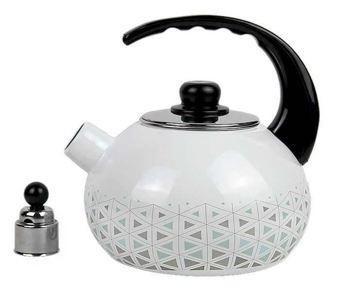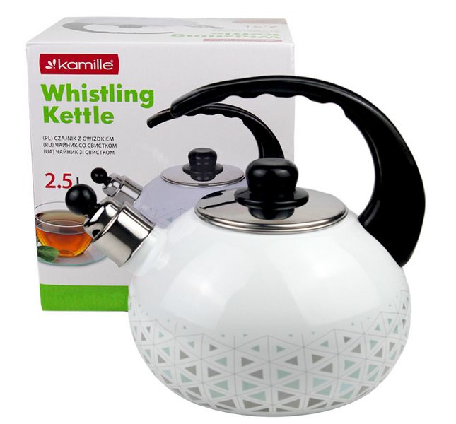 Kamille Чайник 2,5л эмалированный, со свистком и с черной бакелитовой ручкой, индукционное дно.
