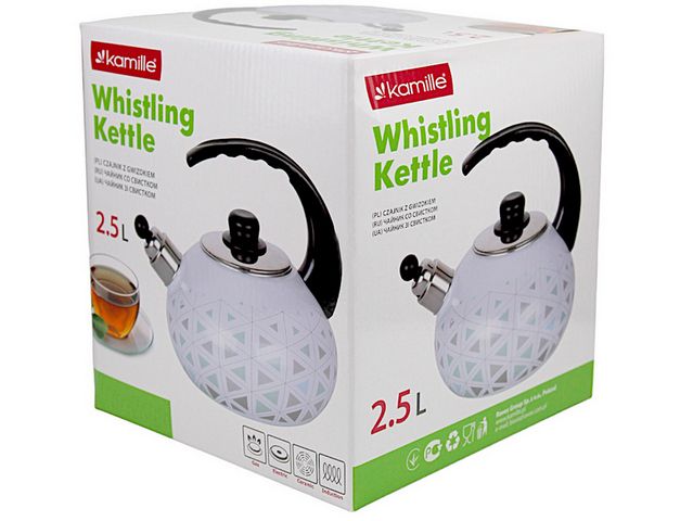 Читать все статьиЧайник 2,5л эмалированный, со свистком, индукционное дно. Kamille Польша