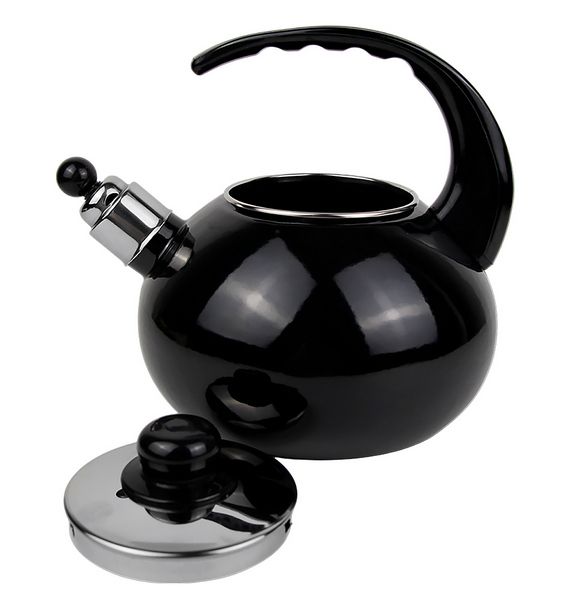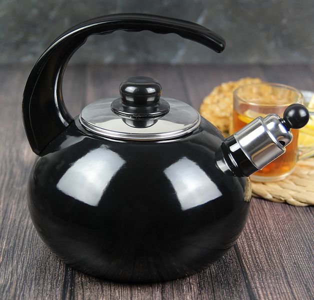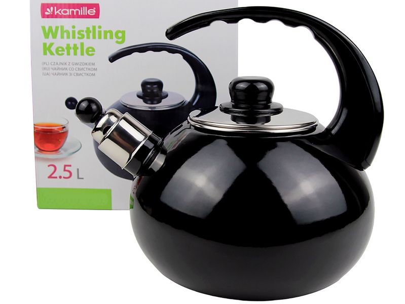 Kamille Чайник 2,5л эмалированный, со свистком и с черной бакелитовой ручкой, индукционное дно.