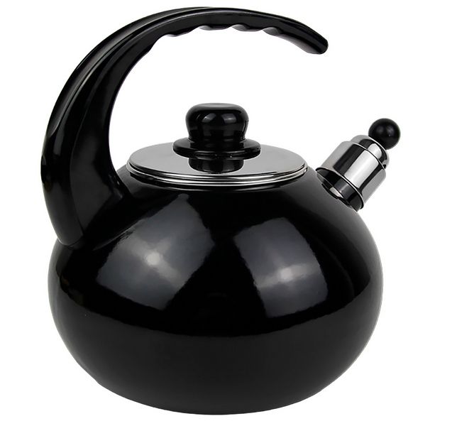 Материал чайник и крышки: высококачественная сталь покрытая эмалью. Общий объем: 2,5 л. Высота с ручкой: 21,5 см. Диаметр: 19 см. Цвет чайника: черный. Тип ручки: фиксированная. Материал ручки: бакелит. Цвет ручки: черный.