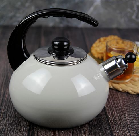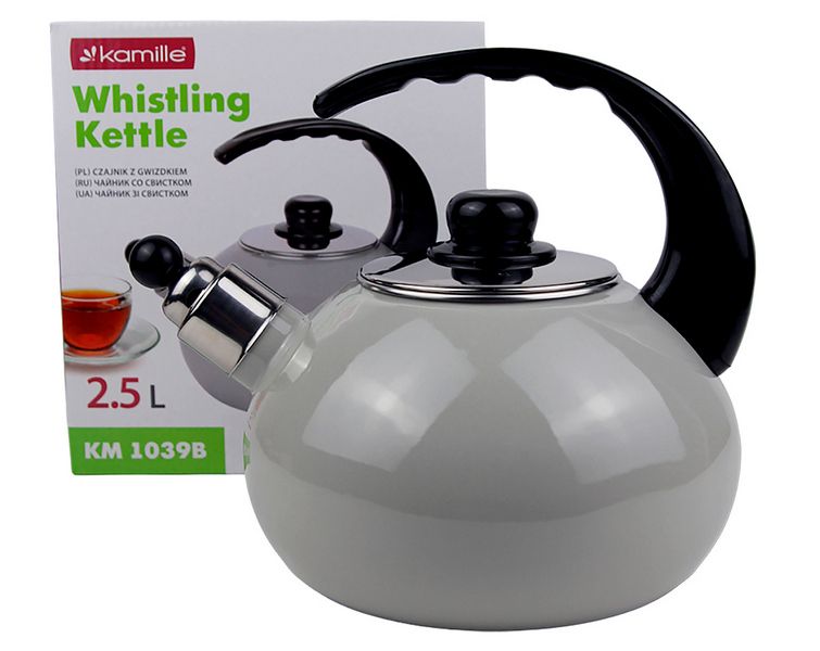 Kamille Чайник 2,5л эмалированный, со свистком и с черной бакелитовой ручкой, индукционное дно.