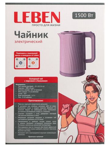 LEBEN Чайник электрический 1,8л, 1500Вт, металл.