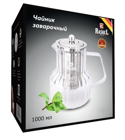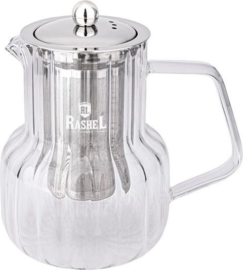 RasheL Заварочный чайник 1,0л. Изготовлен из рельефного термостойкого боросиликатного стекла, цвет: прозрачный.