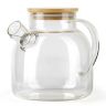 Заварочный чайник с бамбуковой крышкой изготовлен из термостойкого боросиликатного стекла, может применяться как на электрической, так и на газовой плите.