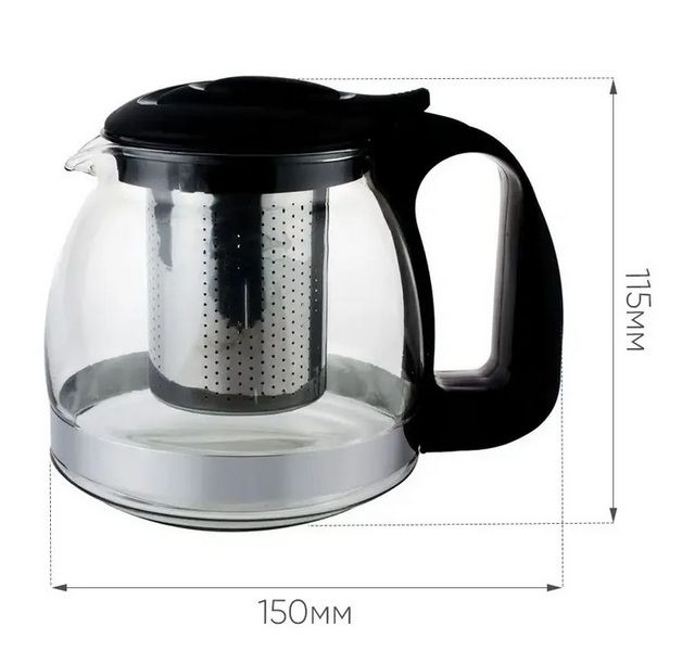 Чайник заварочный 1,1л стеклянный, пластик, с фильтром из нержавеющей стали, черный