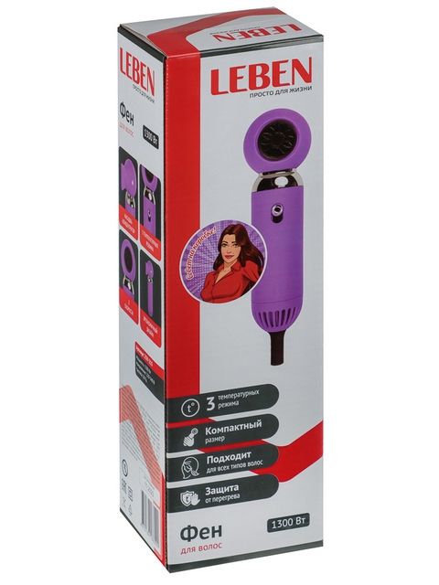 Читать все статьиФен электрический, 1300Вт, защита от перегрева, 220-240В LEBEN