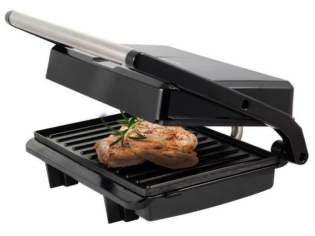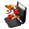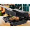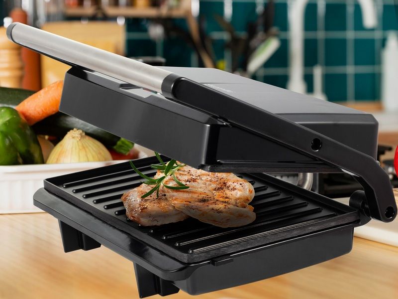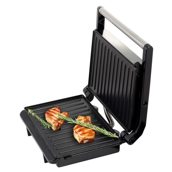 Гриль имеет две прямоугольные плиты, которые закрываются при помощи плавающих шарниров, что позволяет готовить не только мясо, но и панини, бургеры или сэндвичи, также отлично подойдет для того, чтобы поджарить овощи, котлеты или хлеб до хрустящей корочки.
