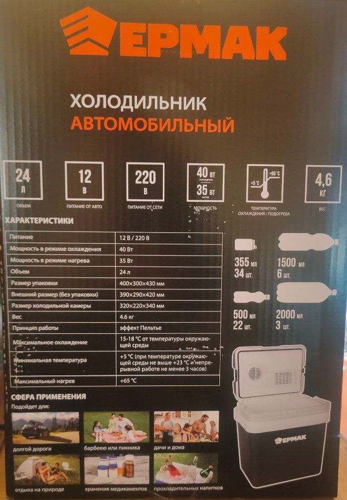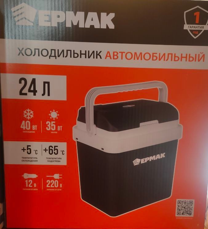 ЕРМАК Холодильник автомобильный, объем 24 л, 12В/220В, серый Охлаждает до +5 и подогревает до +65