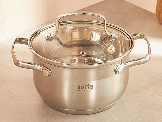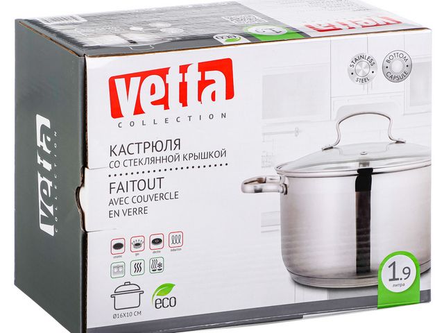 VETTA Берн Кастрюля 1,9л из нержавеющей стали, 16x10cм, стеклянная крышка, индукционное дно.