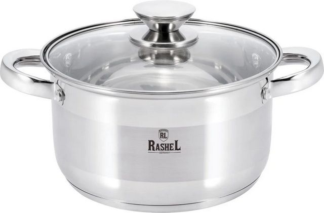Rashel Берта Кастрюля 1,9л из нержавеющей стали, крышка диаметром 16см из стекла с отверстием для паровыпуска, индукционное дно.