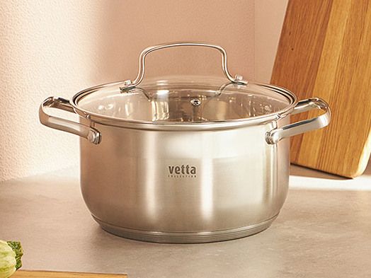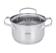 VETTA Берн Кастрюля 2,6л из нержавеющей стали, 18x11cм, стеклянная крышка, индукционное дно.