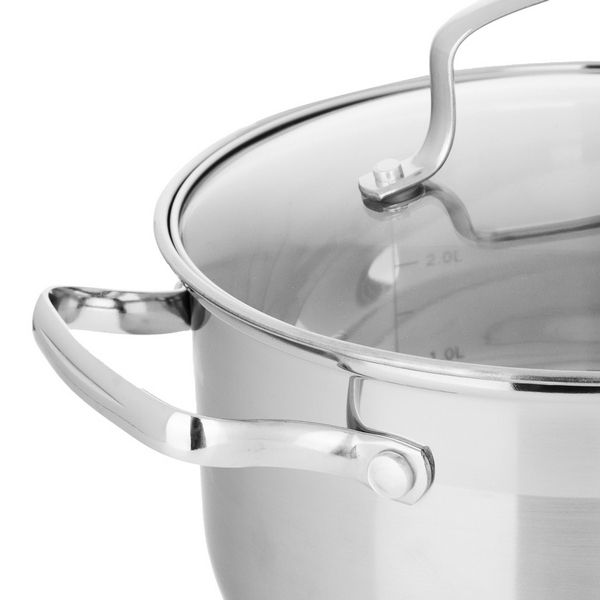 Кастрюля 2,1л из нержавеющей стали, стекл. крышка, индукционное дно. Maesto Гонконг