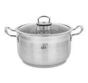 Кастрюля 6,5л из нержавеющей стали, стекл. крышка, индукционное дно. Maesto Гонконг