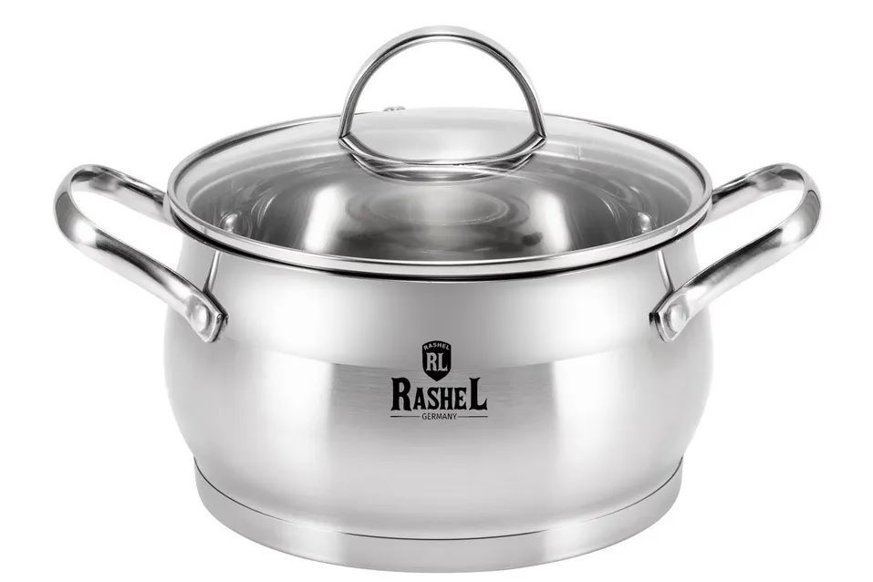 Rashel Катрин Кастрюля 2,8л из нержавеющей стали, крышка диаметром 18см из стекла с отверстием для паровыпуска, индукционное дно.