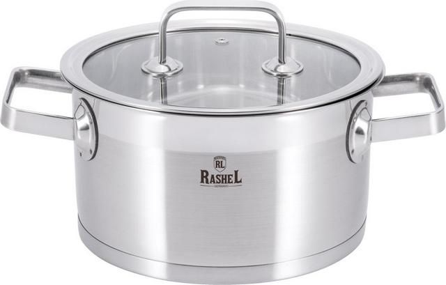 Rashel Виктория Кастрюля 3,7л из нержавеющей стали, крышка диаметром 20см из стекла с отверстием для паровыпуска, индукционное дно.