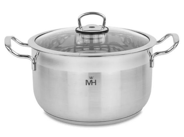 MercuryHaus Turno Кастрюля 4,4л из нержавеющей стали, крышка диаметром 22см из стекла с отверстием для паровыпуска, индукционное дно.