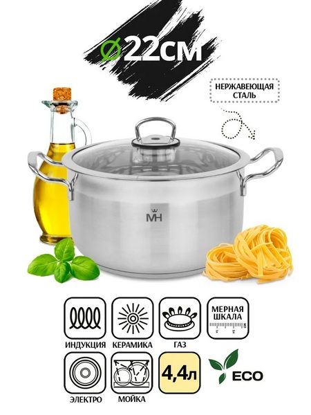 Читать все статьиКастрюля 4,4л Turno из нержавеющей стали, индукционное дно. MercuryHaus