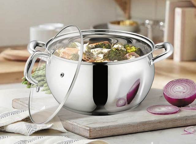 Читать все статьиКастрюля 4,9л из нержавеющей стали, индукционное дно. Maesto Гонконг