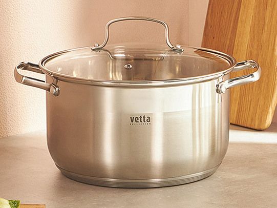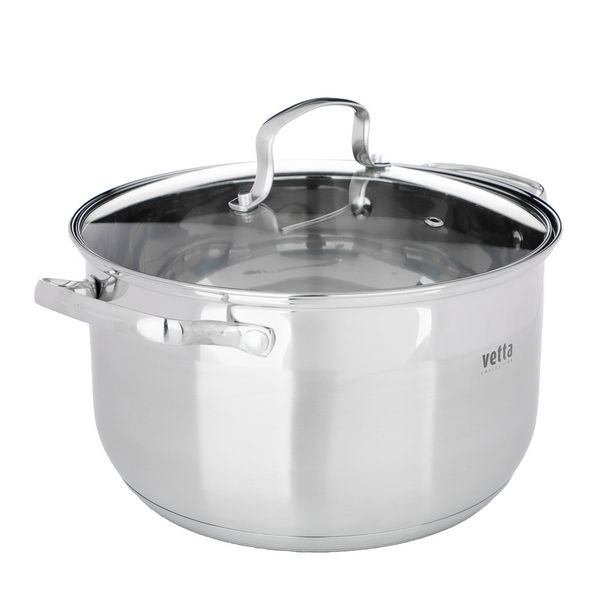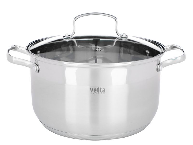 VETTA Берн Кастрюля 6,1л из нержавеющей стали, 24x14cм, стеклянная крышка, прорезиненные ручки, индукционное дно