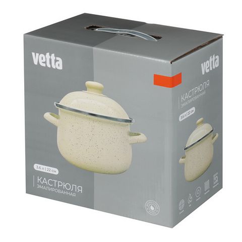 VETTA Айвори Кастрюля эмалированная 3,6л, диаметр крышки 22см. Подходит для всех видов плит, включая индукционные.