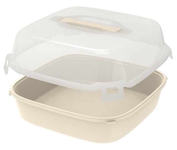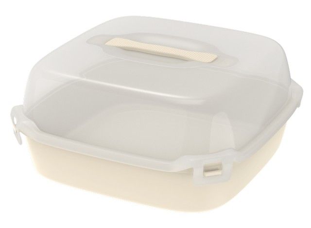 Контейнер подходит для хранения тортов, пирожков, блинов и другой выпечки. Контейнер удобно носить с собой. Защёлки надёжно фиксируют крышку на контейнере.
