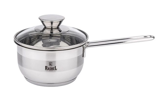 Rashel Мини Ковш 1,2л (нержавеющая сталь, крышка диаметром 14см из стекла с отверстием для паровыпуска, индукционное дно) Турция