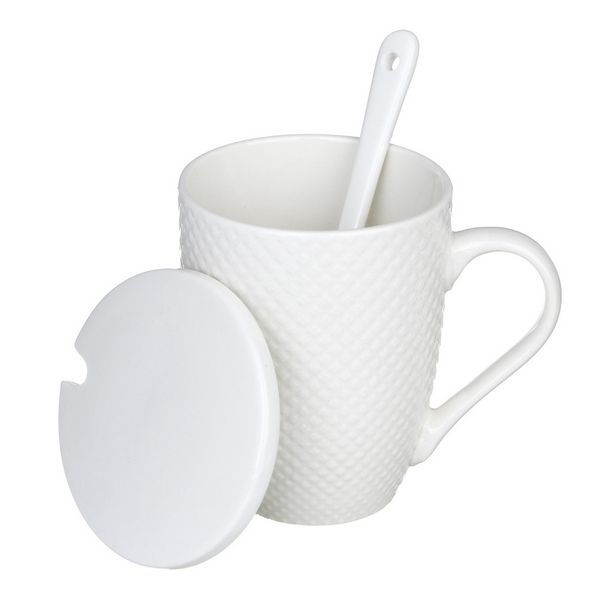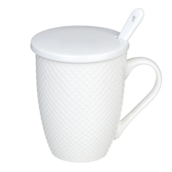 Кружка заварочная с крышкой MILLIMI, объем 400 мл, размер 8,5х10,5 см – это аксессуар, предназначенный для заваривания чая или кофе дома или на работе. Изготовлена из высококачественного белоснежного фарфора с фактурной поверхностью, смотрится элегантно и эстетично несмотря на большой объем. Увеличенный объем придется по душе любителям неспешного уютного чаепития. Плотная крышка с отверстием для ложки позволяет получить насыщенный и ароматный настой, а также способствует длительному сохранению температуры напитка.
