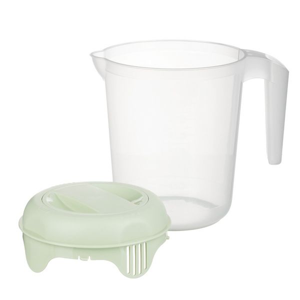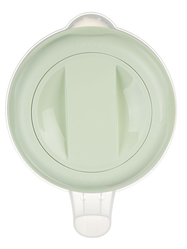 Особенностью кувшина является уникальная двойная крышка, которая надежно предотвращает разбрызгивание продуктов во время работы блендера, делая процесс приготовления аккуратным и комфортным. Наличие удобной мерной шкалы позволяет точно дозировать ингредиенты, а нескользящее дно обеспечивает устойчивость кувшина во время использования. Отверстие в крышке плотно закрывается при помощи вставки, что исключает возможность заветривания содержимого кувшина. Основание крышки имеет три положения: открытое для переливания жидкости, сито для процеживания крупных кусочков и закрытое.
