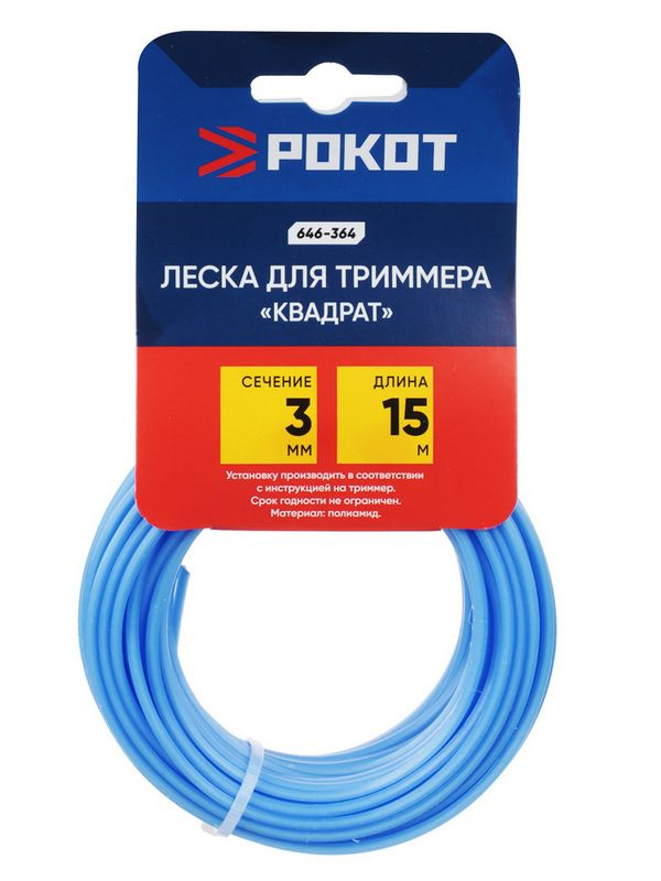 РОКОТ Леска для триммера сечение "квадрат" диаметр 3,0мм, 15м.
