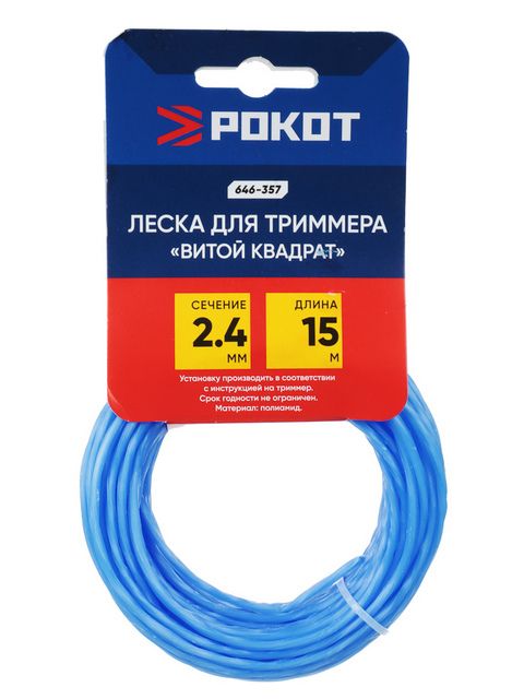 РОКОТ Леска для триммера сечение "витой квадрат" диаметр 2,4мм, длина 15м.