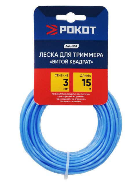 РОКОТ Леска для триммера сечение "витой квадрат" диаметр 3,0мм, длина 15м.