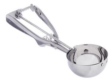 Глубокая круглая ложка d-6см, созданная для накладывания мороженого красивыми ровными шариками, как в ресторанах. Выполнена из металла, не подверженного коррозии.
