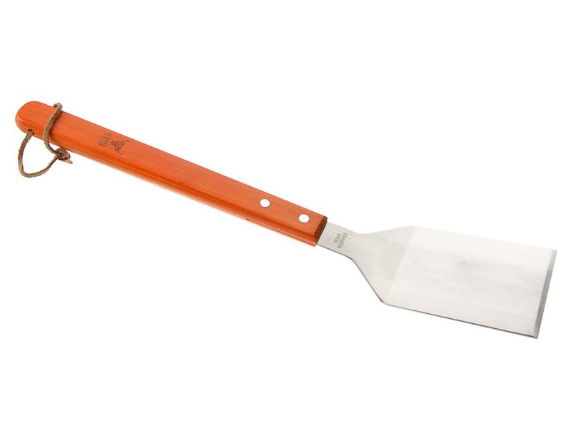 Лопатка для барбекю Grillboom, с помощью которой легко переворачивать ингредиенты и снимать их с огня. Изделие имеет удлиненную деревянную ручку, исключающую получение ожогов во время готовки на огне. Рабочая часть сделана из нержавеющей стали. Гигиеничный материал устойчив к плавлению и деформации.