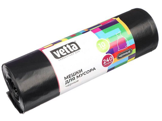 VETTA Мешки для мусора 240л, 10шт, прочные, материал: ПВД, рулон. Россия