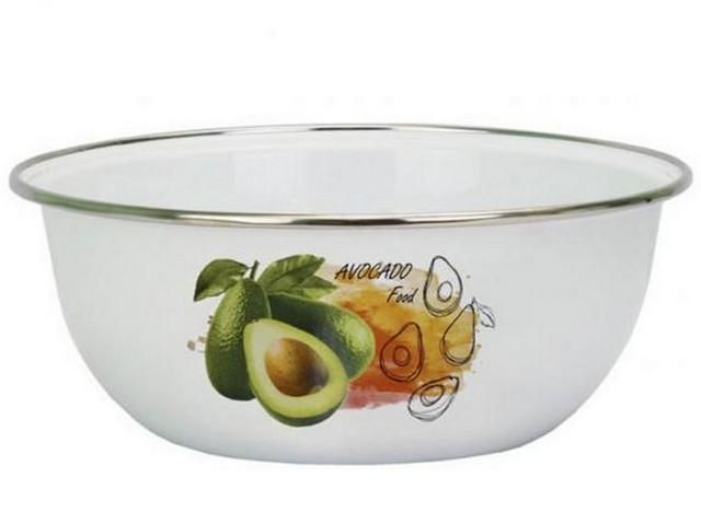 Читать все статьиМиска 2,5л Авокадо эмалированная, белая с рисунком. Россия