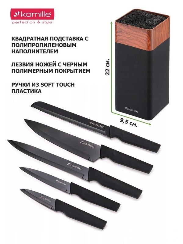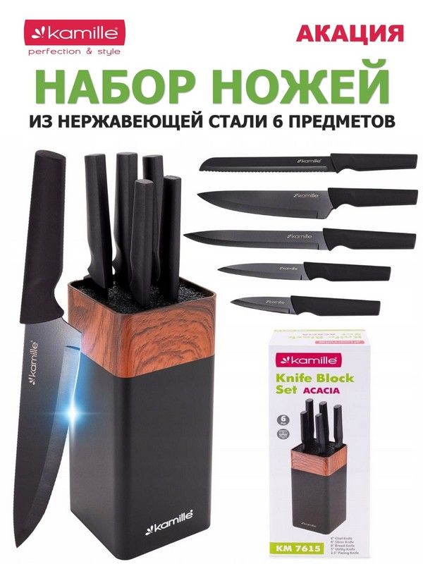 Читать все статьиНабор ножей 6 предметов с подставкой Kamile
