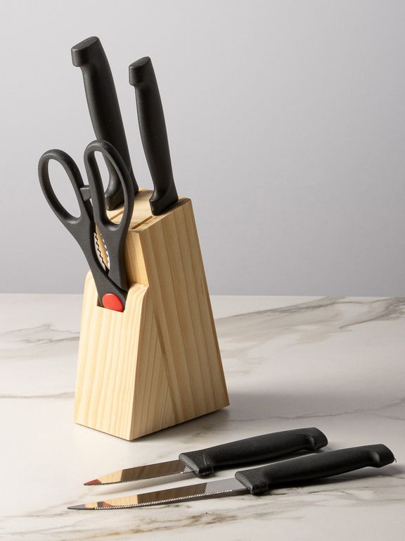 Читать все статьиНабор ножей 6предметов, деревянная подставка, бакелитовые ручки