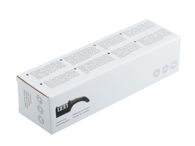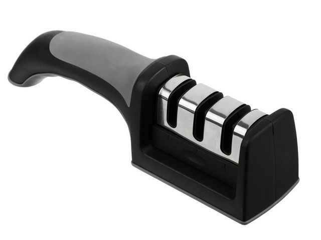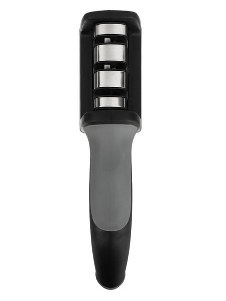 Инструмент имеет 3 уровня заточки, которые подарят вам безупречно острый нож. Первый паз оснащен жесткими алмазными роликами для черновой заточки. Второй уровень включает в себя алмазные ролики с низкой твердостью для финиша. Третий паз оснащен керамическими роликами для правки и полировки режущей кромки. Эти три уровня сделают ваш нож идеально острым и готовым к резке любых продуктов. С ножеточкой ваши ножи всегда будут острыми и готовыми к использованию. Ножеточка не подходит для заточки керамических ножей. Материал: корпус из полипропилена, точильные диски из керамики и вольфрамовой стали.