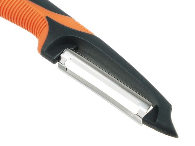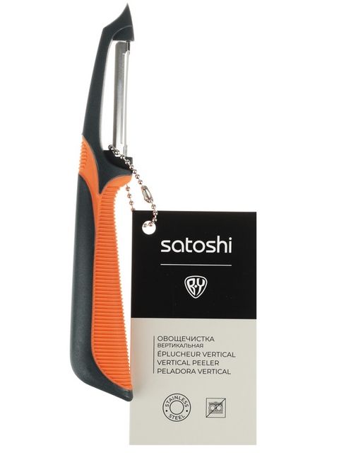 Вертикальная овощечистка SATOSHI, 18 см с острым лезвием из нержавеющей стали поможет быстро и без труда почистить картофель, морковь, яблоки и другие овощи и фрукты. Лезвие имеет специальную геометрию, которая удаляет кожицу, снимая тонкий слой. Заостренный угол в верхней части овощечистки предназначен для удаления картофельных глазков. Рукоять с антискользящими накладками не выскальзывает из рук.