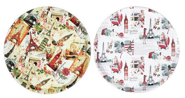 Поднос круглый с антискользящим покрытием ПВХ, пластик, 35,5см, 2 дизайна