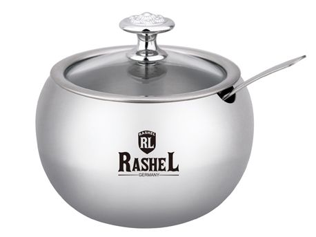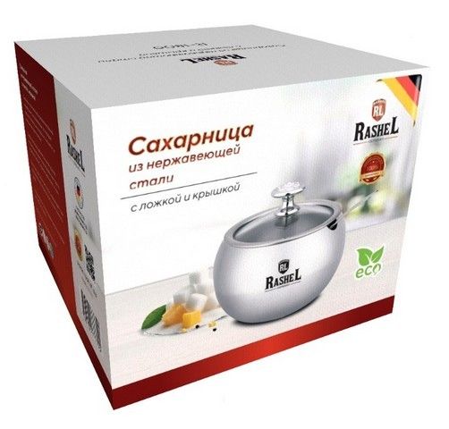 Rashel Сахарница 500мл из нержавеющей стали с крышкой и ложкой.