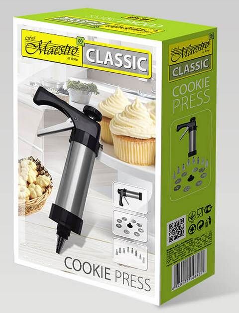 Maestro Шприц для печенья (и декоратор тортов) кондитерский из нержавеющей стали с 8 насадками. Гонконг