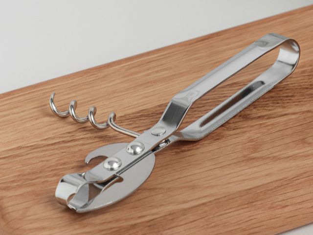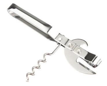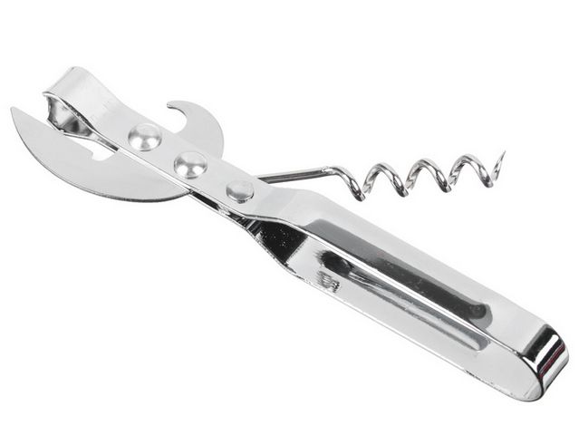 Изделие 2 в 1: служит в качестве штопора и открывалки консервных банок. Простой и универсальный аксессуар. С его помощью можно открыть емкости разных типов.