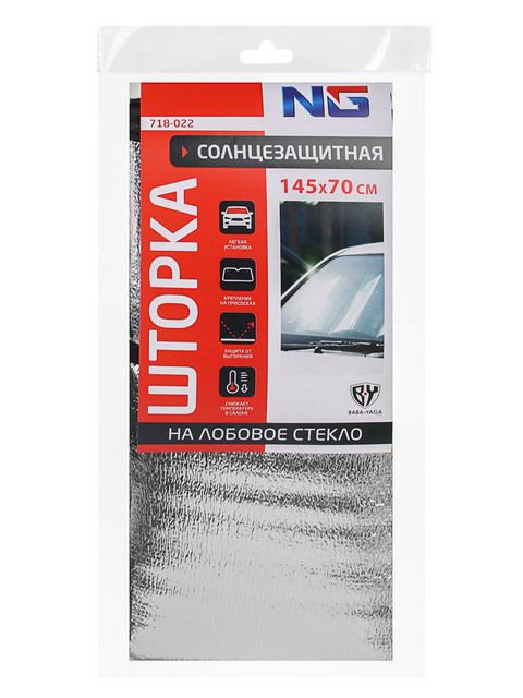 Двусторонняя солнцезащитная шторка размером 145x70 см защитит от попадания солнечных лучей со стороны лобового стекла в салон машины. Серебристая поверхность шторки отражает солнечные лучи, предотвращает их попадание в салон и защищает торпеду автомобиля от нагрева.