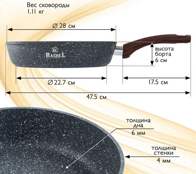 Rashel Сковорода алюминиевая литая диаметром 28см с индукционным дном, цвет: серый гранит.