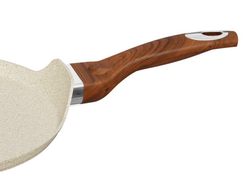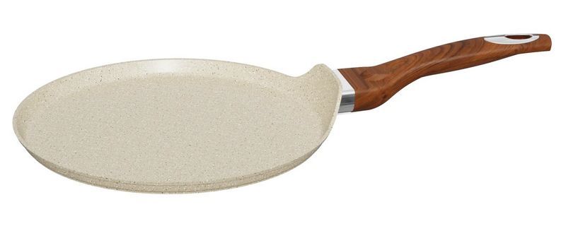 Rashel Сковорода блинная диаметром 22см (толщина стенок 4 мм, толщина дна 6мм, бакелитовая ручка под дерево с покрытием "Soft Touch")