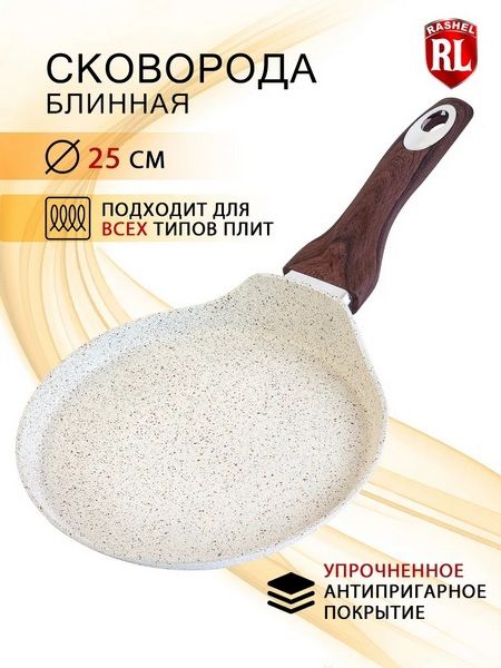 Читать все статьиСковорода блинная 22см с антипригарным покрытием, индукционное дно. Rashel
