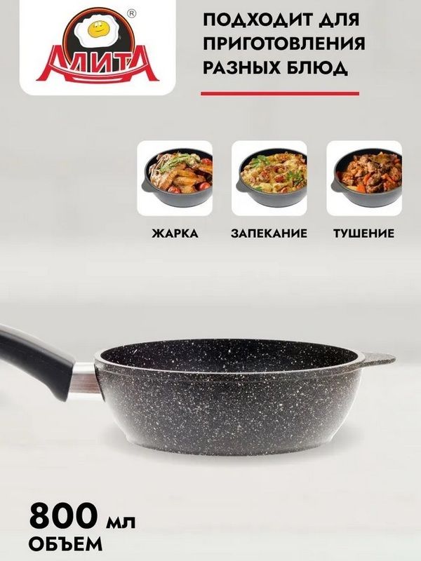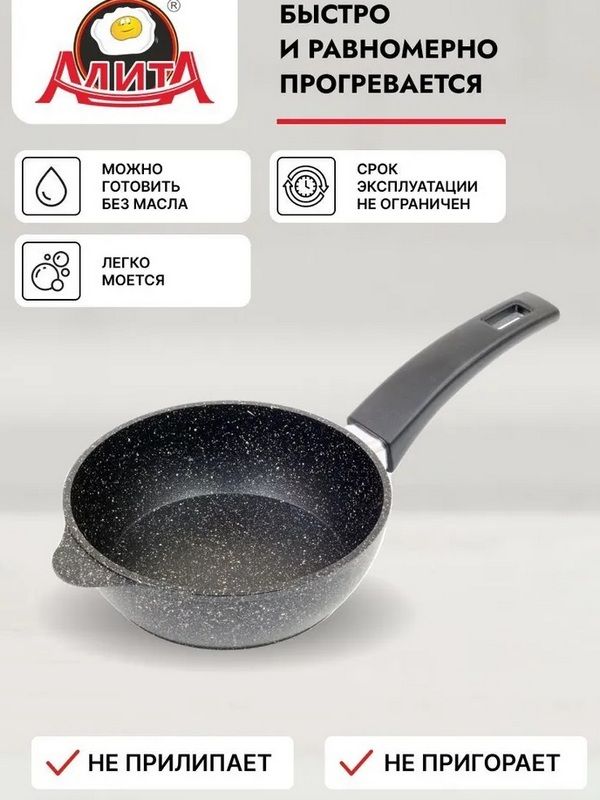 АЛИТА Сковорода "Уля" диаметром 16см (литой алюминий, толщина дна 4,7мм, антипригарное каменное покрытие, цвет: природный камень) РОССИЯ